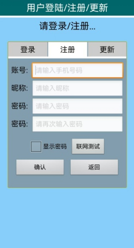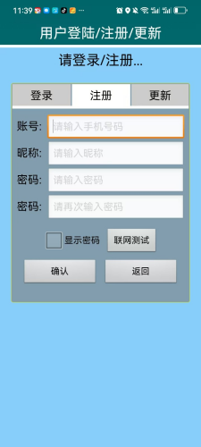 1、在这个界面,新用户可以输入账号、昵称和密码快速完成注册。