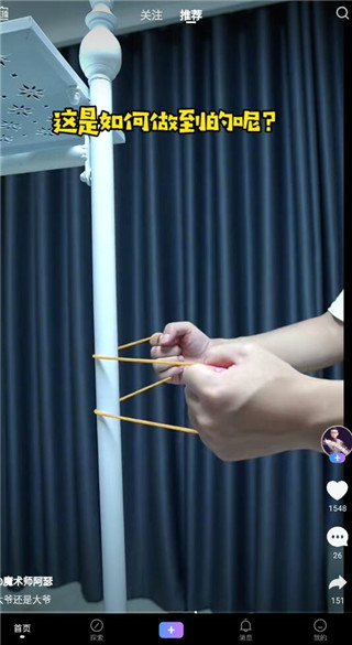 2、探索菜单里有各类短视频包括搞笑、影视、游戏、美食等