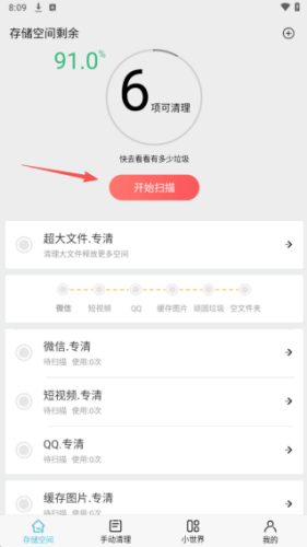 5、管理手机存储,快速优化内存,清理文件夹中多余的垃圾,让手机更流畅。