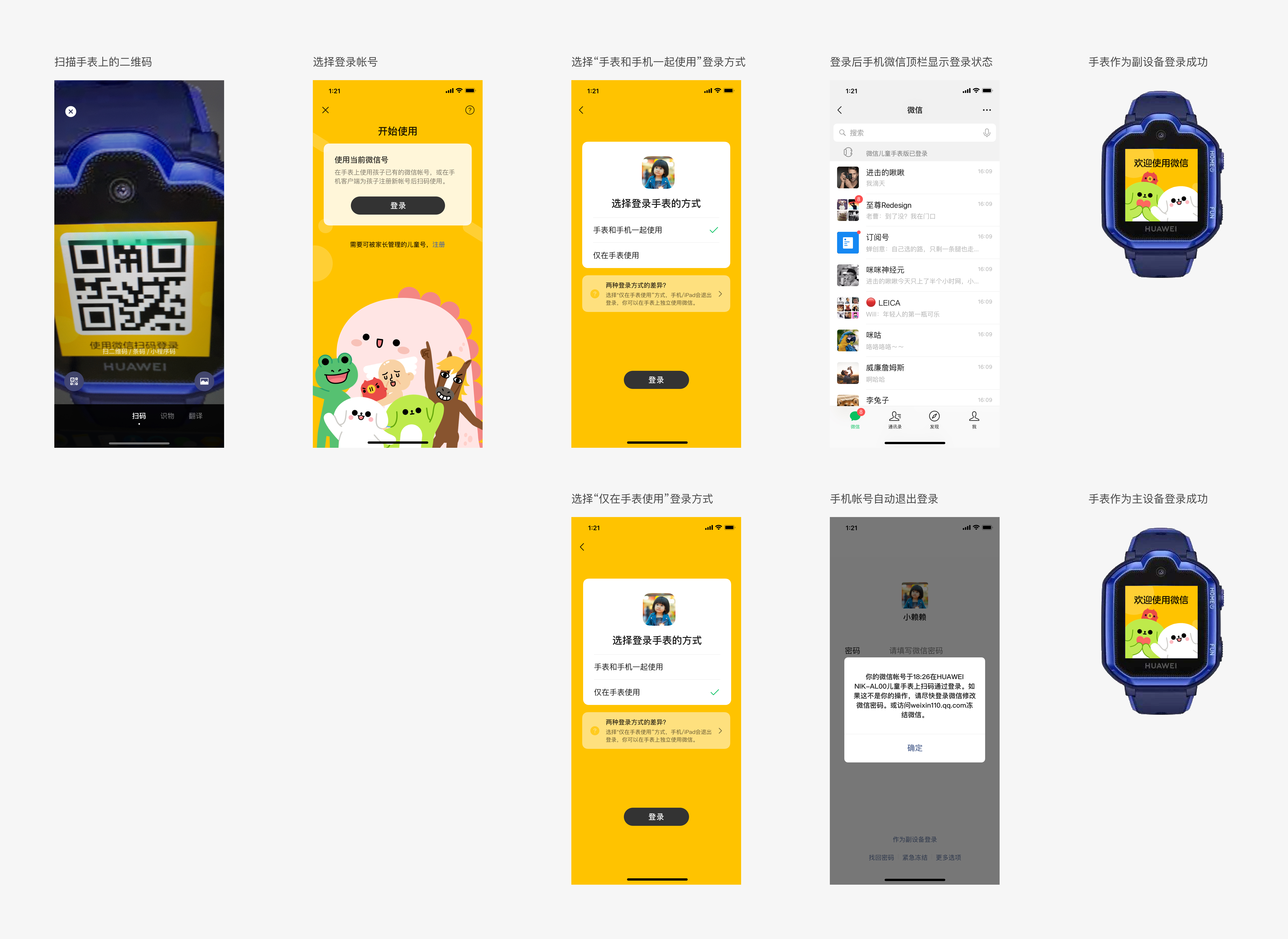 支持使用已有微信帐号登录手表,可以选择手机与手表一起登录或独立登录手表。