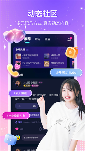 主要面向95后和00后,用户可以轻松在自己喜欢的朋友圈和兴趣爱好中找到志同道合的朋友。