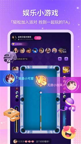 可以进行语音开黑、群聊、唱歌、游戏、连麦、互动聊天等多种方式,快速找到聊天伙伴。