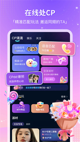 提供相亲房、陪聊房、情侣房、K歌房等个性房间,满足用户不同社交需求