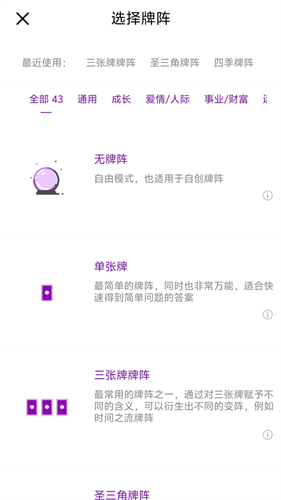 以分类的方式为你呈现牌阵信息,便于能便捷选择。