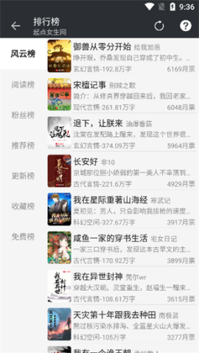 2、选择你感兴趣的小说排行榜单点击进入,可以查看许多热门以及好评小说资源。