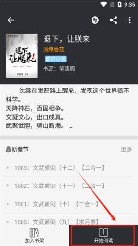 3、找到你喜欢的小说后,点击进入查看小说简介,然后点击下方的开始阅读。