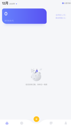 1、大家进入首页之后,可以看到自己当月的支出情况,随时开启记账。