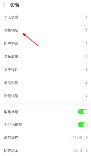 3、在设置界面众多选项中,仔细查找并选中 “收货地址” 选项,跳转至地址管理页面。