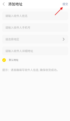 5、在弹出的地址填写界面,详细输入收件信息,确认无误后点击 “提交” 完成地址添加。