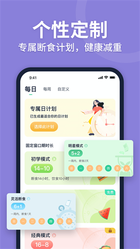 1、覆盖16+8、5+2等国际认证断食模式,支持自定义禁食时长与进食窗口。