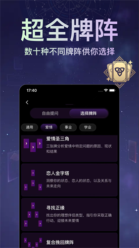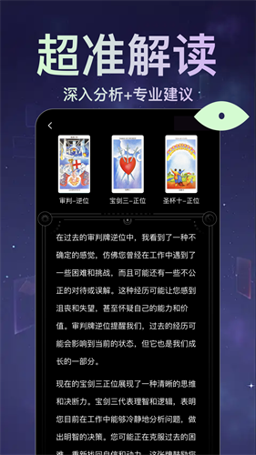 4、有趣高效的移动分析,定制不同类型的在线分析模式,享受个性化的塔罗牌体验。