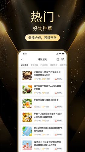 1、汇聚大量精选素材,含视频转场、电商带货类型。