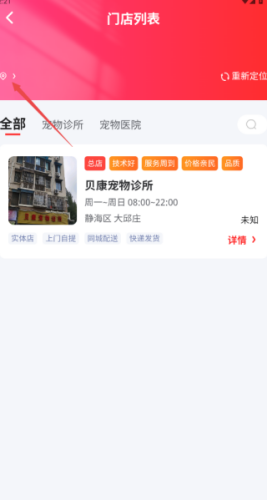 3、还可以开启定位,一键查询附近所有宠物诊所,打疫苗或者看诊都非常方便。