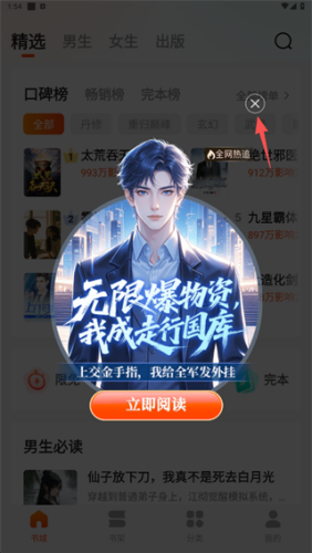 1、软件下载安装后,打开软件查看推荐小说,可以点击右上角的关闭。