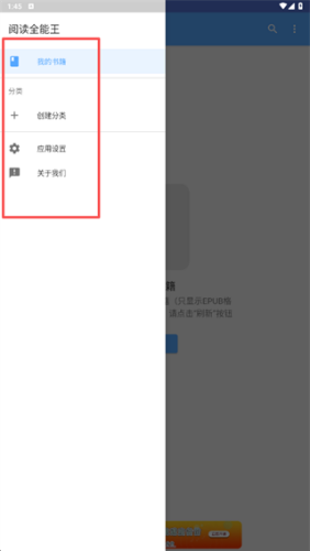 4、左上角的横线点击进来可以进行个人中心,可以在这里创建小说分类还可以进行应用设置。