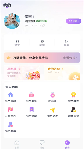 可以创建游戏开黑房、生活闲聊房、音乐分享房等,房间创建者可以对房间进行管理。