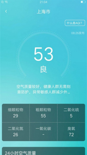 6、【空气质量】PM2.5一目了然,空气质量预报,从容面对雾霾污染。
