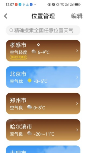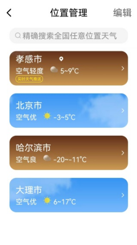 5、支持全国所有城市及地区天气预报,数据准确伴随着您的每一天,实时天气预报。