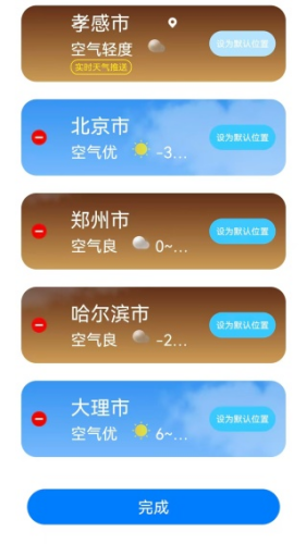 4、可自定义添加多个关注城市,一键切换查看不同地区的实时气象信息。