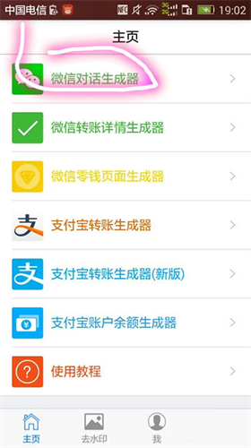 下载好我们进入软件,我们会看到个微信对话生成器,点击进入。