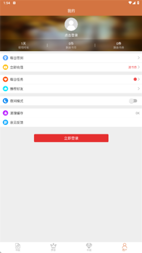 4、在我的页面提供每日签到、每日任务、夜间模式、推荐好友等功能服务。