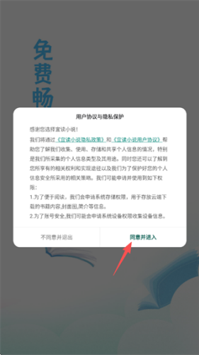1、软件下载安装完成后,查看并阅读用户协议等内容点击同意并进入。