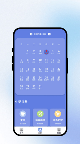 2、还有日历功能和生活指数功能,让大家都能够合理的规划每天的出行和旅游方式。