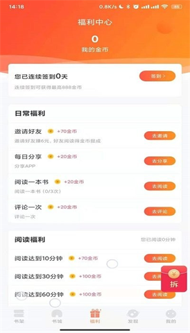 3、在福利中心这里可以选择日常以及阅读任务,完成后即可领取福利。