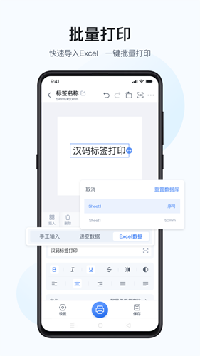 支持Excel数据库导入和序列化设置,轻松实现标签批量打印。