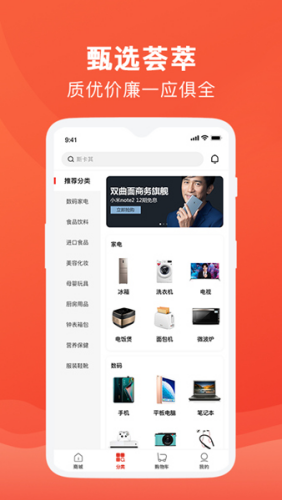 3、包含了多种商品分类,家用电器、家居、美食、美妆等应有尽有。