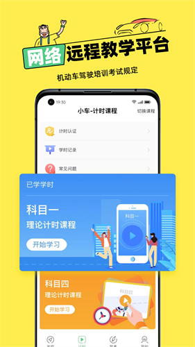 1、应用中有科目一和科目四的计时课程,用户通过计时课程可以积累自己的学时。