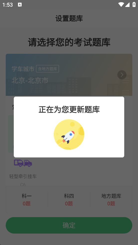 2、选定城市后,系统会自动更新对应地区的最新驾考题库。
