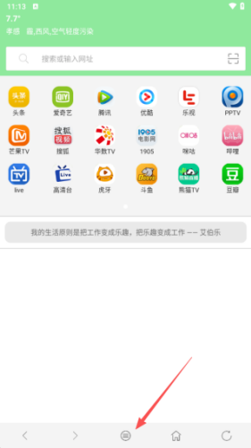 1、在本站下载并安装好西米浏览器,进入首页,然后点击底部的三条杠图标。