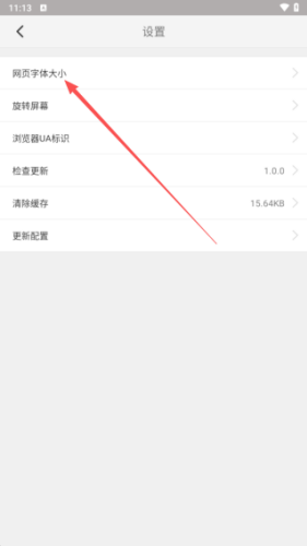 3、进入设置界面,找到并点击网页字体大小功能,如图所示。