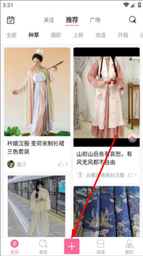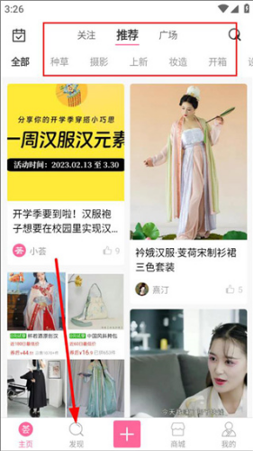 2、打开汉服荟App登录进入主页,可浏览关注推荐及广场等内容。