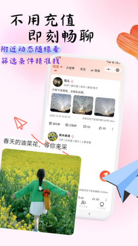 4、随时在线互动,你有很多广受欢迎的交友机会,精彩有趣的活动给用户更多的情感刺激。