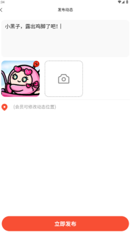 2、点击右下角的发布动态按钮,进入到动态编辑界面,能够编辑动态内容,还能插入图片。