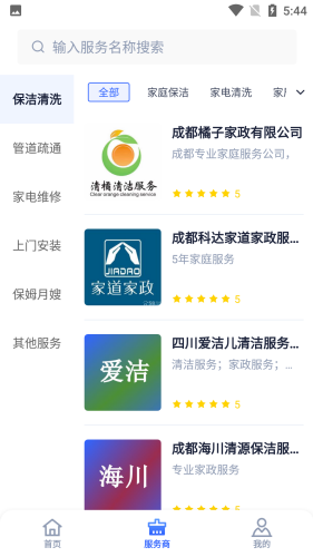 7、搜索服务:可以在搜索窗口内输入关键词,短时间内直接寻找到对应的各种家政服务。