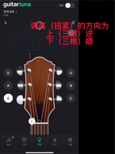 2、拨动对应的琴弦,显示负数提示调高,需要扭紧琴弦