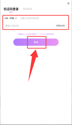 3、若选验证码登录,输入手机号及验证码即可使用。