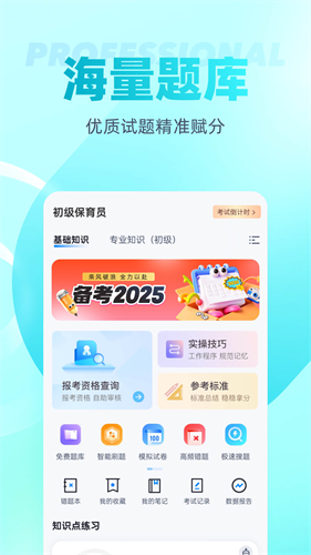 保育员考试聚题库app是一款针对保育员资格考试推出的专业性备考工具,其核心价值在于全面覆盖官方考试大纲,为考生构建了一个系统而高效的学习闭环。应用深入整合了幼儿护理、早期教育、卫生保健及安全防护等核心知识领域,将庞杂的考点转化为结构清晰的章节练习与模拟试卷。其题库并非简单堆砌,而是严格依据命题趋势进行设计与筛选,不仅收录了大量历年真题,更提炼出反复出现的高频考点,帮助用户精准把握复习方向,避免在无关内容上耗费精力。保育员考试聚题库app对实操知识点的梳理尤为实用,将那些在真实工作场景中至关重要的技能,以易于理解和记忆的方式呈现出来,做到了理论与实践的紧密结合。对于备考者而言,它既是一个随时可查的权威资料库,又是一个能够陪伴整个复习周期,根据个人进度不断调整侧重点的贴心伙伴,有效缓解了备考的焦虑感,让学习过程更加自主和从容。