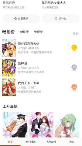 2、app还提供了分离排行榜功能,用户可以及时了解热门漫画,避免错过精彩的作品。