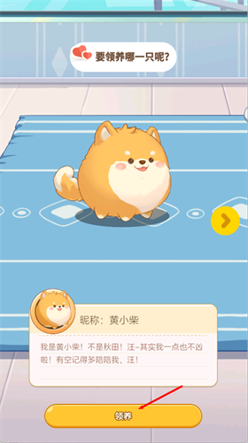 1、打开心动萌宠app,点击进入领养宠物界面。