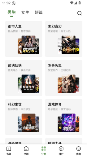 2、接下来我们可以选择都市人生、玄幻奇幻、武侠仙侠、科幻末世等多种不同类型的小说。