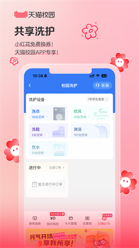 天猫校园app是一款为高校学子打造的一站式校园生活服务平台,它深度整合校内零售、出行、洗衣与品牌优惠资源,将学生日常所需的吃喝玩乐行全面纳入数字化服务生态。通过与百大知名品牌合作,平台为认证学生用户提供专属折扣与会员权益礼包,从奶茶咖啡到数码配件,从文具日用品到潮流服饰,优惠触手可及。在天猫校园app里每笔在合作门店的消费都转化为可积累的小红花,形成正向激励闭环,校内骑行服务支持实时查看车辆位置,一键解锁绿色出行;洗衣功能则实现预约、支付、状态提醒全流程线上化,告别排队等待。同时,应用接入校园共享电动车与滑板车系统,扫码即走,解决最后一公里通勤难题。共享洗衣烘干服务则让衣物清洁变得省心高效。整体设计年轻化、操作极简,真正让便利与实惠融入校园生活的每一刻。