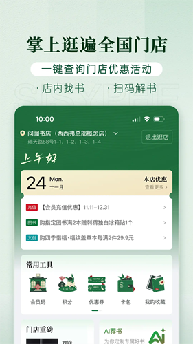 查找门店/搜索商品/店内找书/门店动态,门店轻松逛。