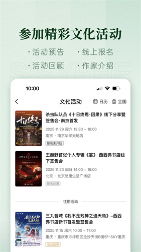 活动预告/线上报名/活动回顾/作家介绍,精彩活动全收下。