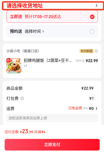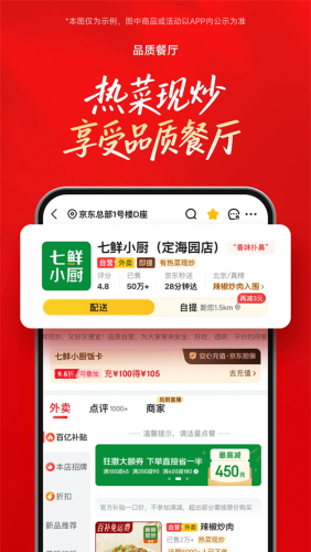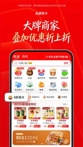 6、依托京东物流与达达秒送,餐饮订单平均送达时间快于30分钟,急用数码等品类支持立等可取。