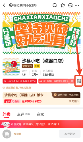3、每家店的优惠活动都是不一样的,点击【更多优惠】可以查看详情。