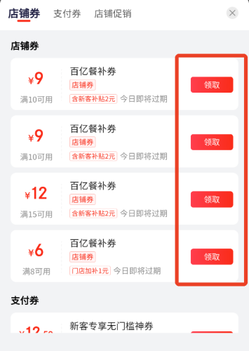 4、可以领取店铺专用的优惠券,点击右边红色的【领取】即可,要注意过期时间哦。
